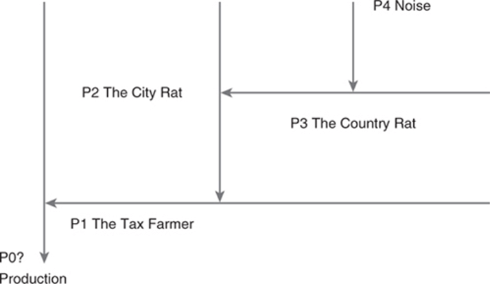 Serres’ schema is then a formulation of a materialist informational theory, one in which the parasite (the noise) has agency of its own and is indeed the included third which conducts the exchange of information, integrating this informational logic within the multi-agent system of his materialist ontology.